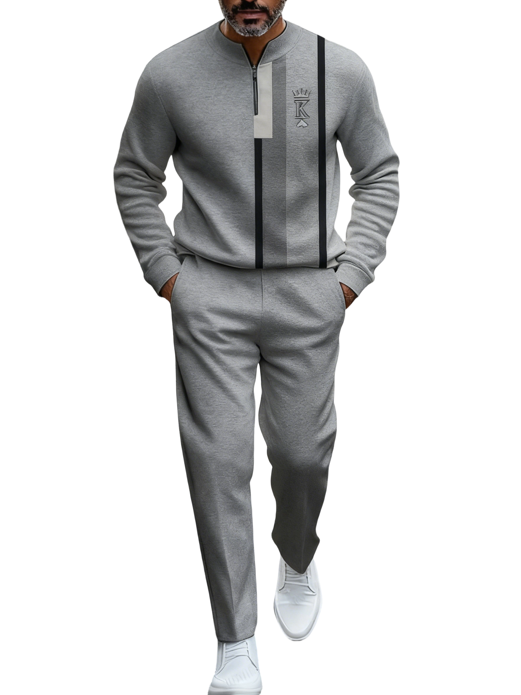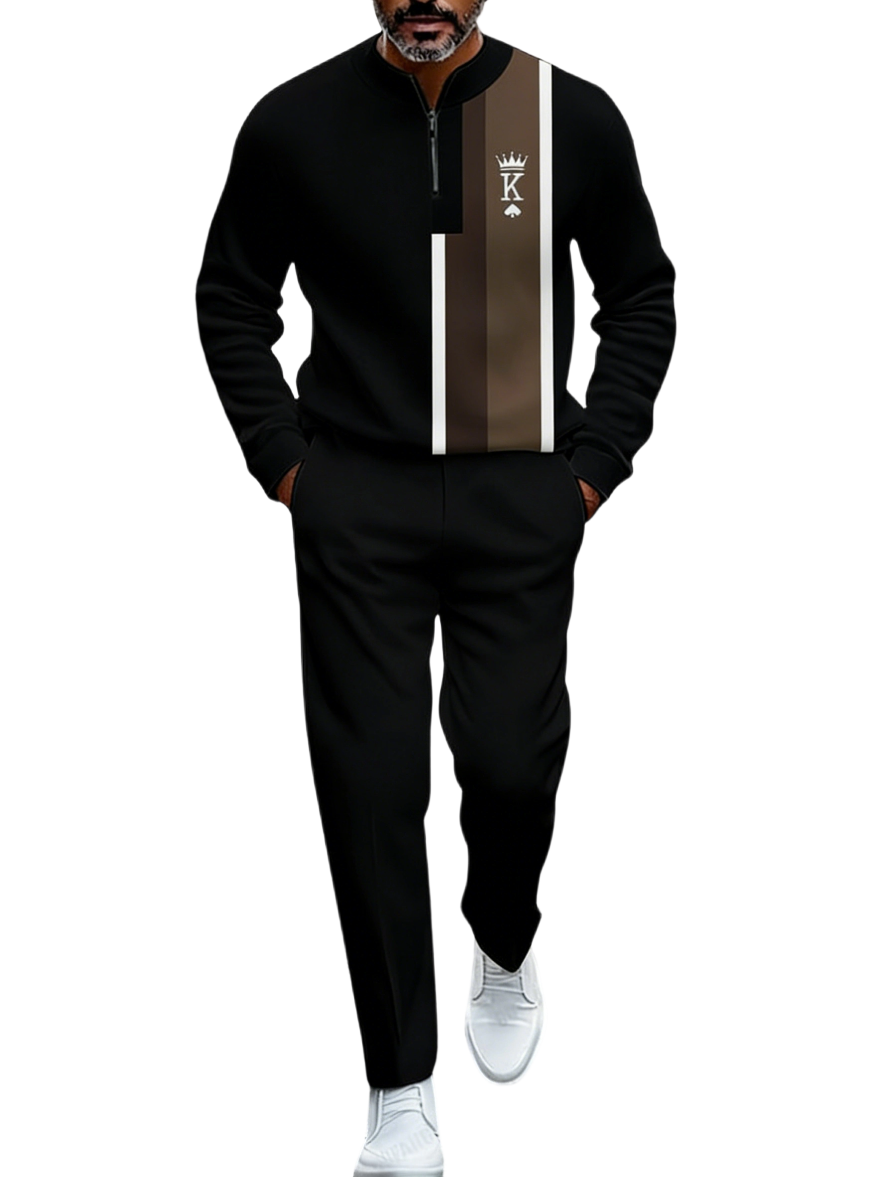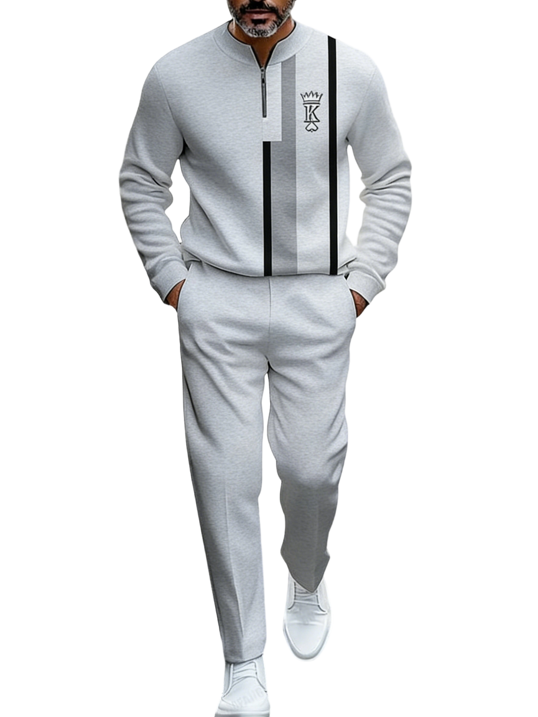 This set features a crown design, perfect for autumn and winter. It includes a long-sleeved zipper, making it versatile for casual and formal wear. Ideal for Christmas, Halloween, and Black Friday gifts. The set combines style with functionality, suitable for sportswear enthusiasts.