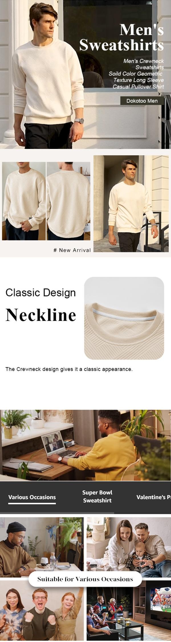 ·Match: This plain crewneck sweatshirt can be easily paired with jeans, shorts, or sweatpants, creating a casual and stylish look. Layer it with a sports jacket or wear it under a jacket for a more refined outfit. It is a must-have in your wardrobe, effortlessly creating various styles for different occasions.