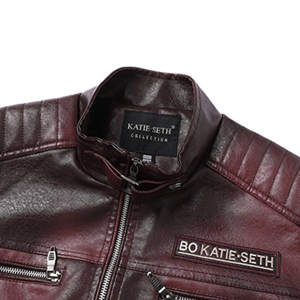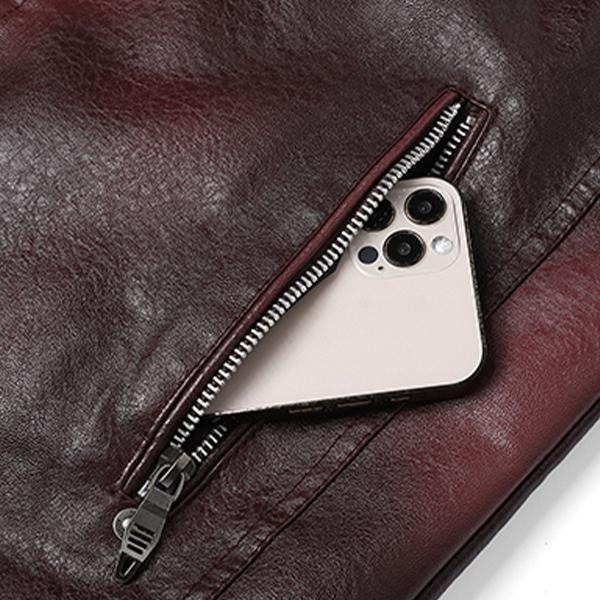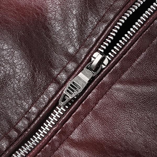 Men's Wine Red PU Leather Motorcycle Jacket