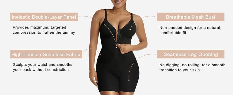 Key Innovations You'll Love:·Faja-Inspired Front Panel: Our game-changing feature is the inelastic, double-layer front closure. The inner row of closures provides a secure, customizable fit, while the outer zipper locks everything in place, creating an unyielding wall of support that smooths and flattens your core like nothing else.
