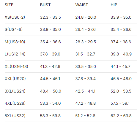 📏Size Chart (in)