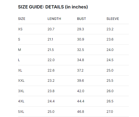📏Size Chart (in)