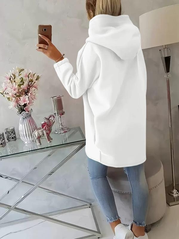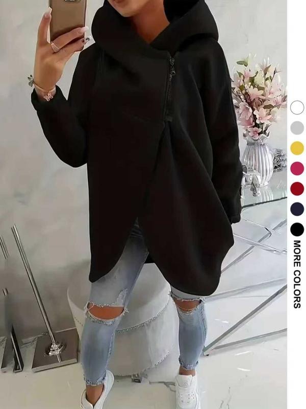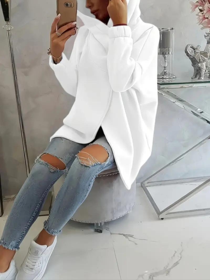 【Asymmetrical Hem】: The asymmetrical bottom hem with slits adds a modern touch, setting this hoodie apart from conventional styles.