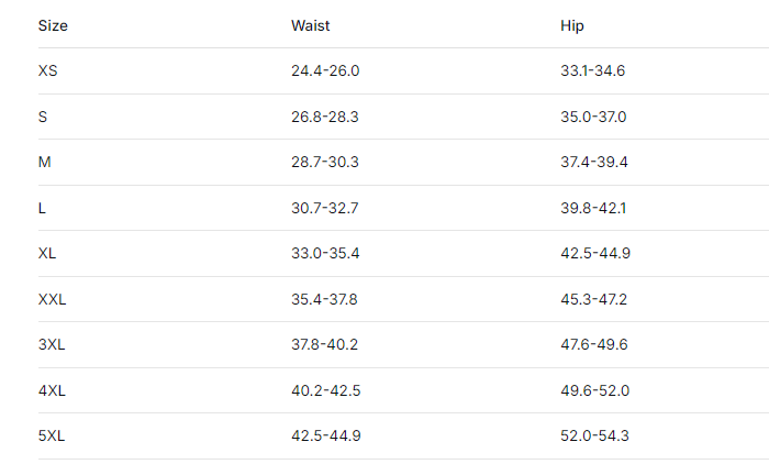 📏Size Chart (in)