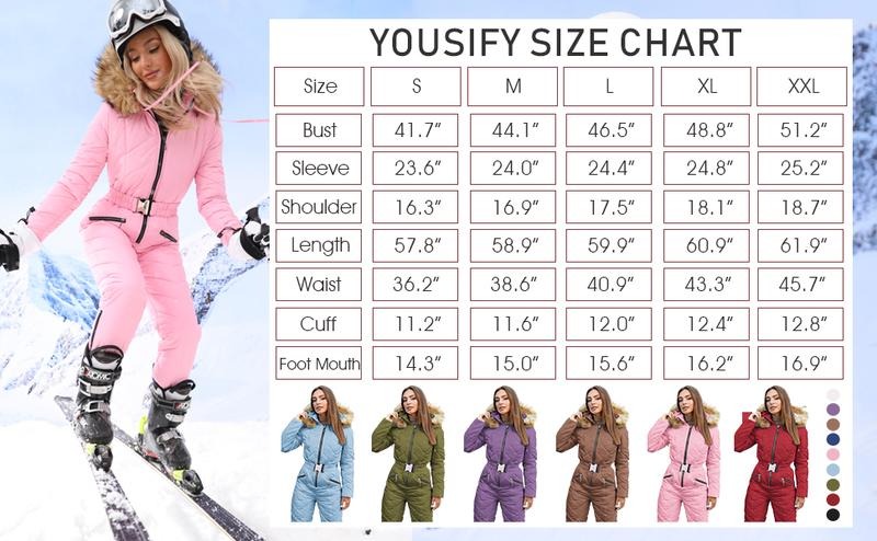 Conclusion:The Women's Winter Ski Suit One-Piece Hooded Fur Collar Jumpsuit Snowsuit is a versatile and warm outdoor sports coat, perfect for winter activities. The removable fur collar and waterproof coating ensure comfort and protection. The unique design and solid color make it a stylish and essential item. Refer to the size chart and care instructions for the best fit and maintenance.100% CUSTOMER SATISFACTION GUARANTEED